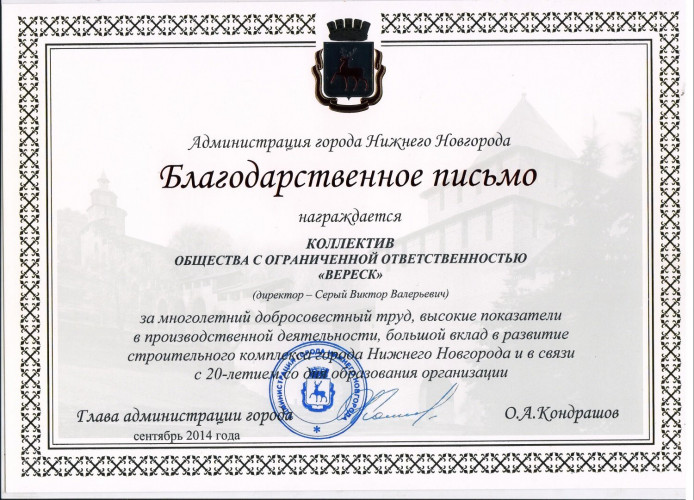 2013 год – начато строительство первого жилого дома в квартале улиц Актюбинская-Якорная-Конотопская в Канавинском районе г. Нижнего Новгорода.